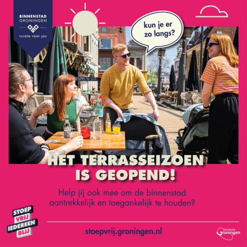 Met de campagne ‘Stoep vrij, iedereen blij’ werkt de gemeente Groningen aan een inclusieve, veilige en toegankelijke binnenstad voor alle voetgangers, en in het bijzonder voor blinden en slechtzienden. De campagne is een praktische uitwerking van de eerder opgestelde Handleiding Toegankelijke Openbare Ruimte (TOR) en richt zich op het vrijhouden van stoepen van obstakels, zoals terrassen, fietsen en uitstallingen.